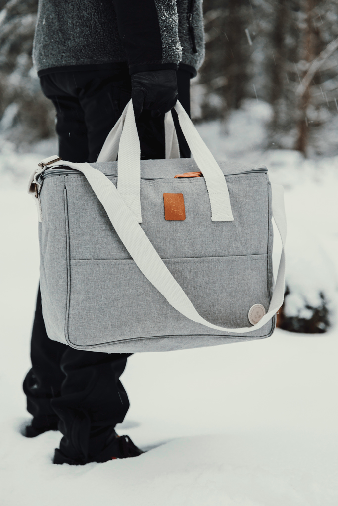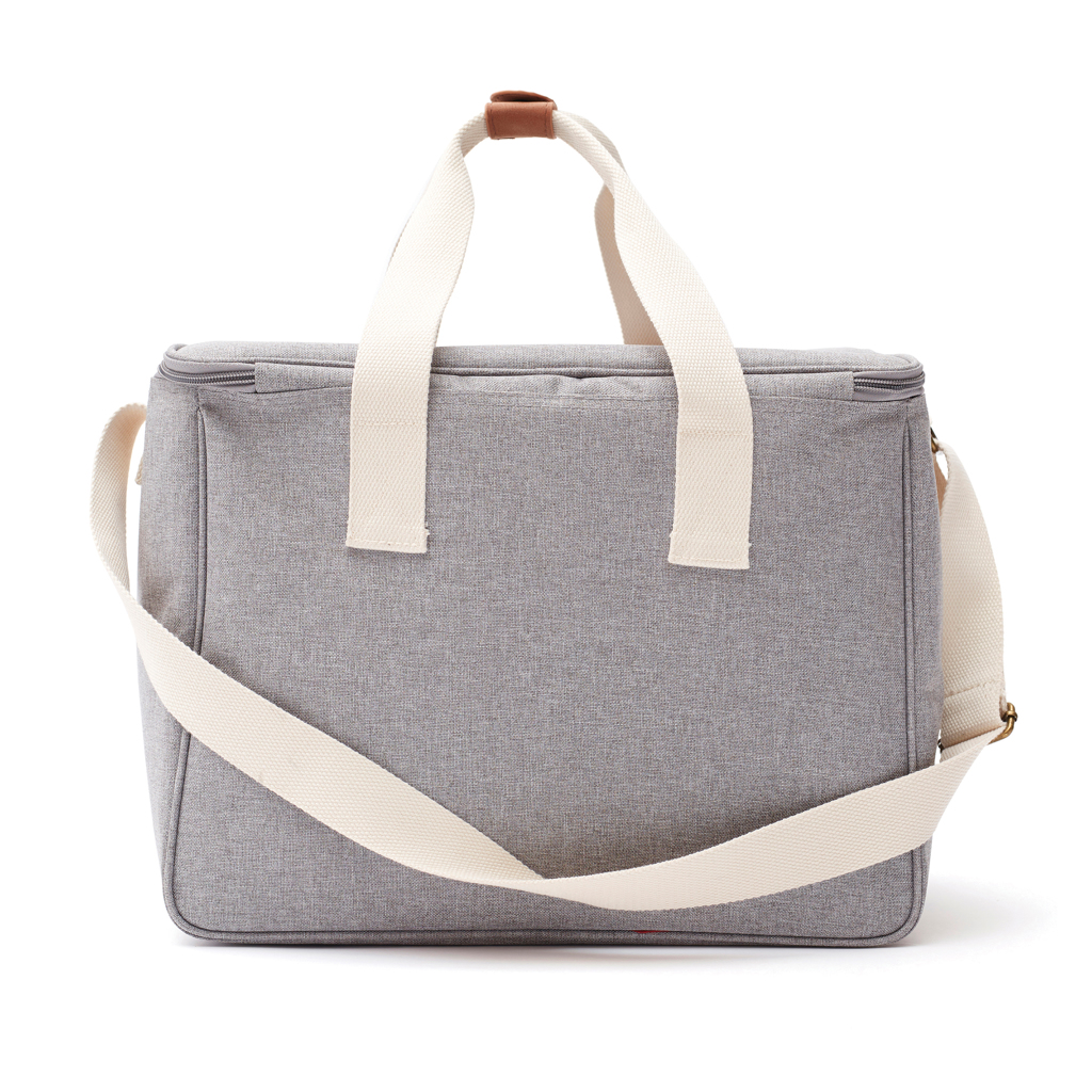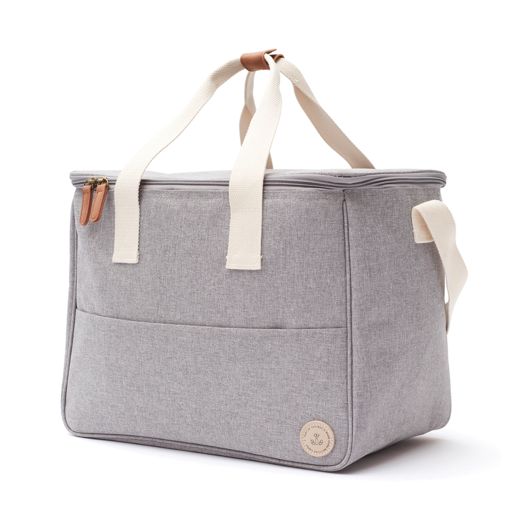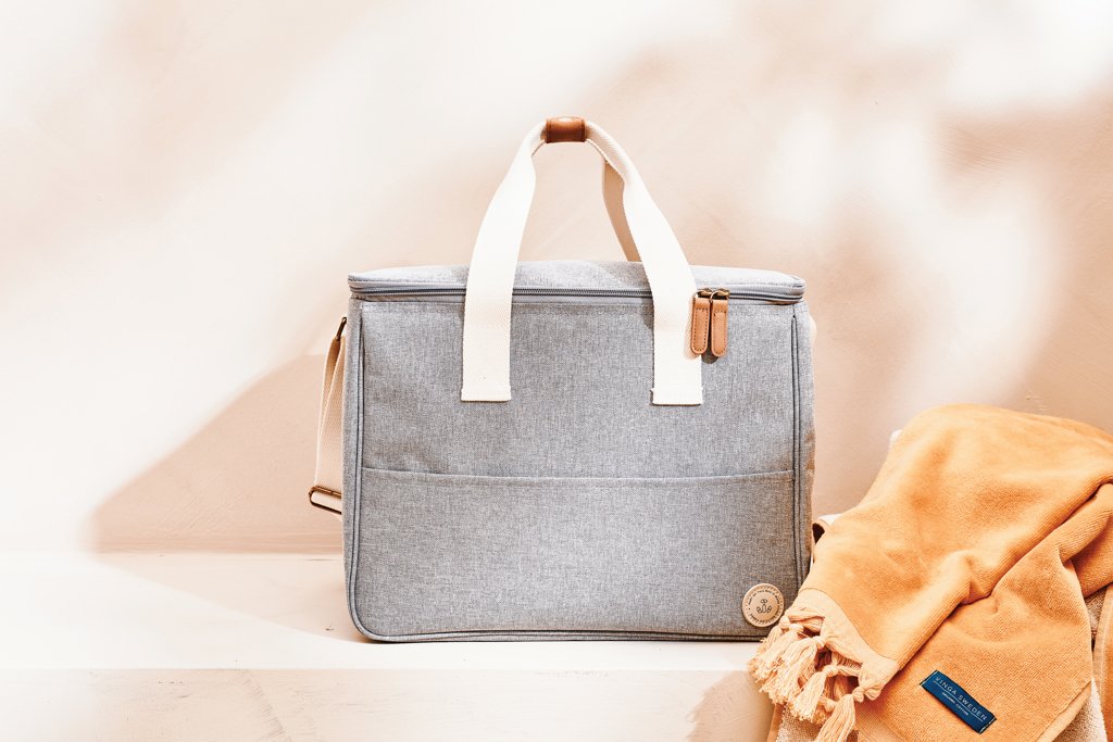 This spacious cooler basket with a lid means the end to the old boring plastic versions. The cooler bag is in a melange fabric accompanied with PU details which makes it as fancy as a normal bag. The PEVA lining keeps cool for a long period of time, and is also easy to clean. Both with shoulder strap and handles.