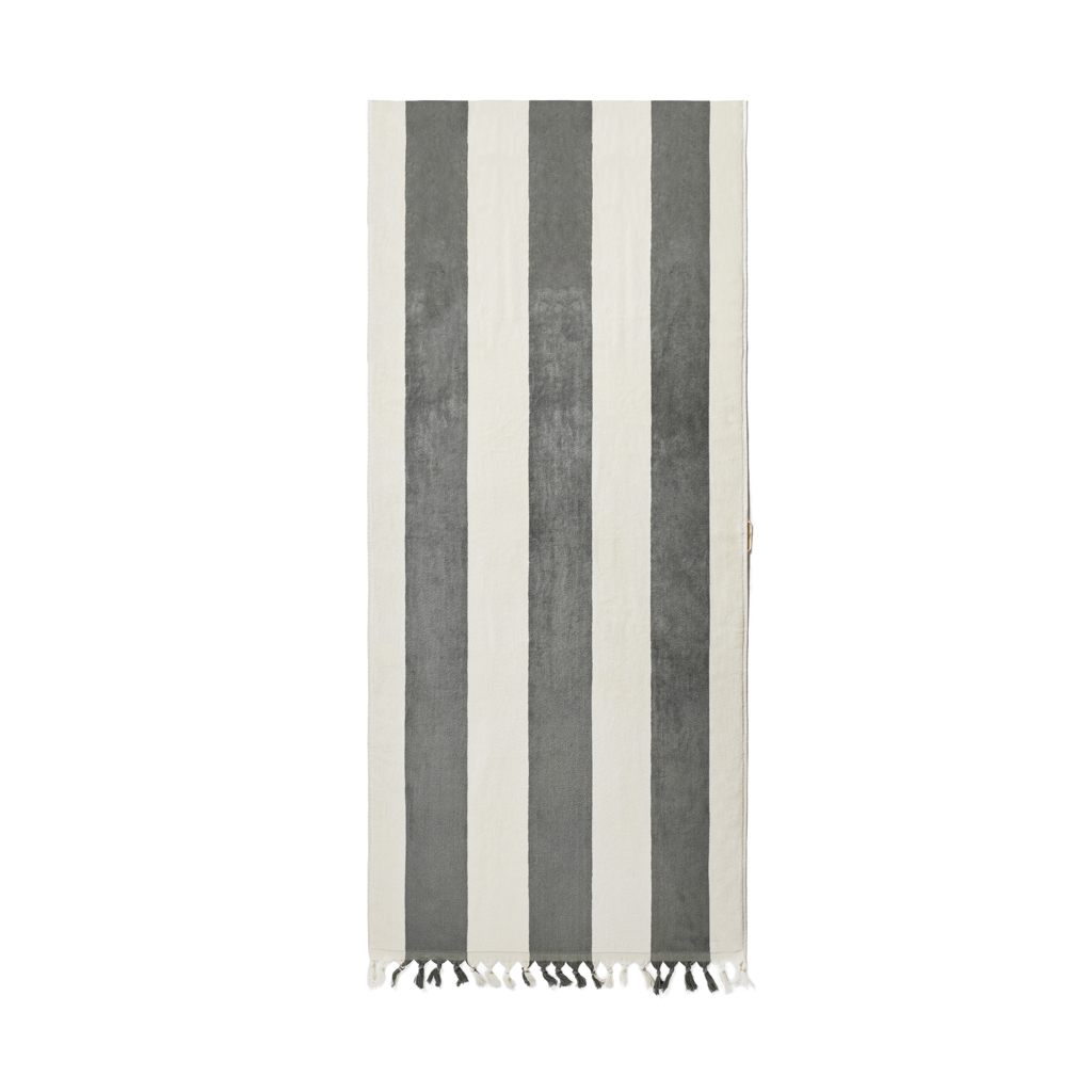 A luxurious cotton beach towel, with tassels at one short end and a lounge chair pocket at the other. Slide the pocket over the lounge chair to keep the towel in place. Our beach towels are made in India with cotton, and have a thickness of 450 g/m2. OEKO-TEX® STANDARD 100. 09.HIN.68091. Hohenstein HTTI.