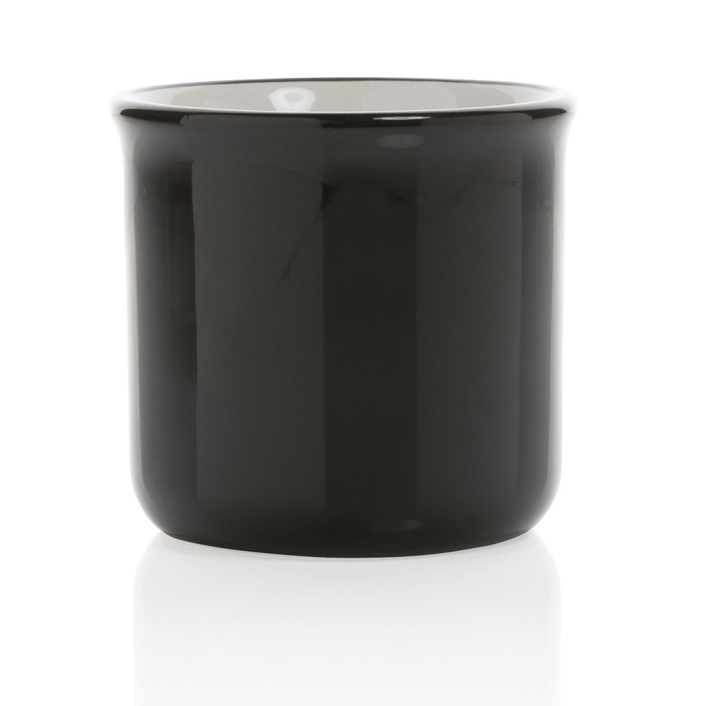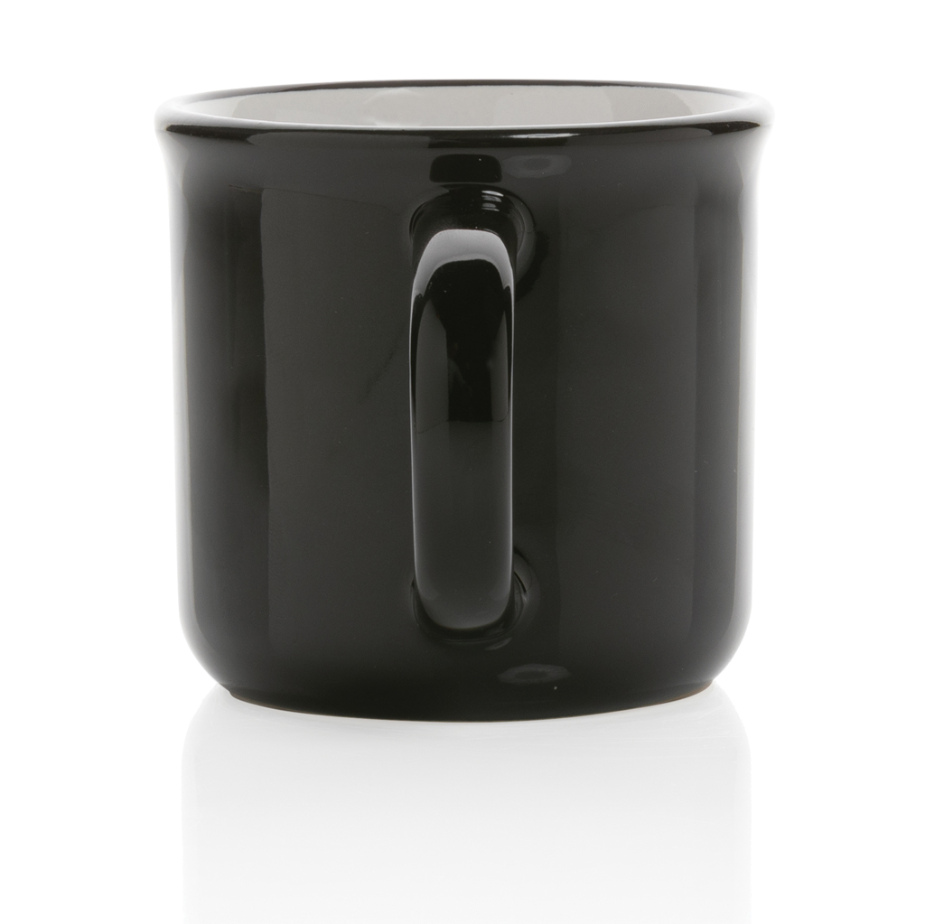 This mug is made from ceramic for durability and lasting use. The mug has a vintage look and features a curved handle for easy grip. Dishwasher safe in accordance with EN12875-1 (at least 125 washing cycles) for all decoration methods. Packed in gift box. Capacity 280ml.