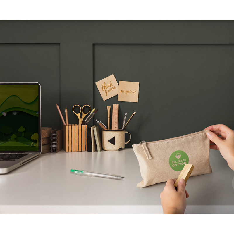 U eco friendly kolekciju spadaju artikli od recikliranog papira, kartona dobivenog iz održivih šuma, organskog pamuka, recikliran plastike, jute, bambusa, vlakna pšenične slame, reciklirane kože i mnogih drugih ekološki prihvatljivih materijala.