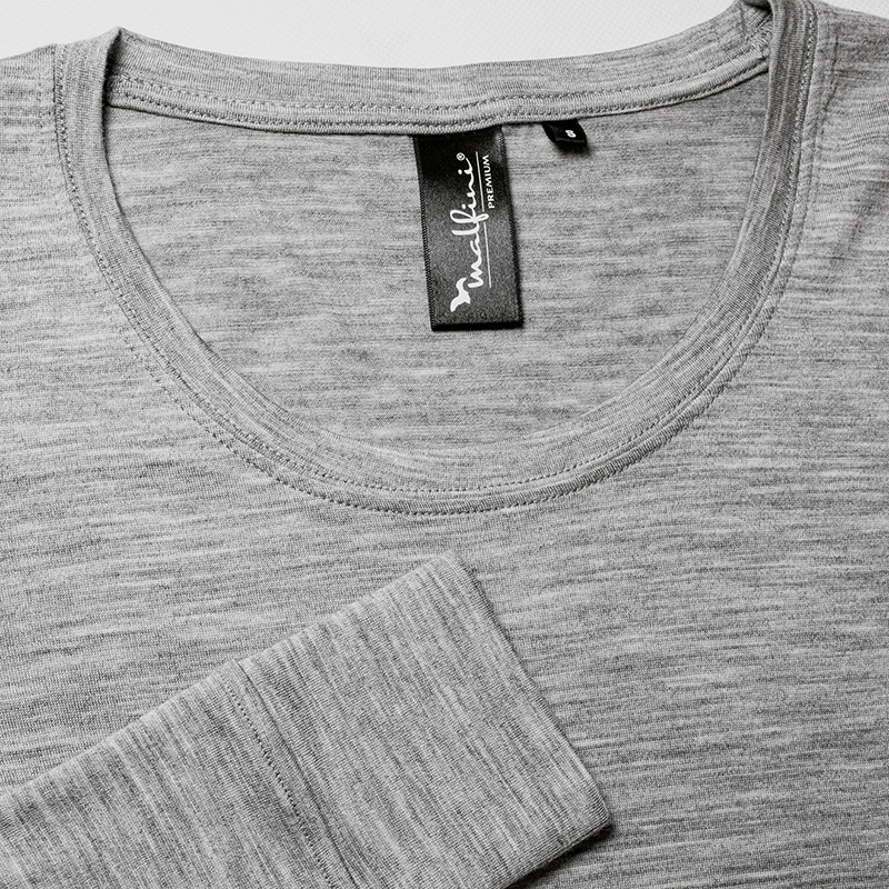 Majica ima uski kroj s bočnim šavovima koji prate oblik tijela, dodajući elegantnu siluetu. Duboki okrugli izrez daje dodir suvremenosti, dok uzak porub ovratnika i unutarnji dio ovratnika štite od iritacije kože. Ojačani šavovi na ramenima pružaju dodatnu izdržljivost, dok dugi rukavi s manžetom pružaju udobnost i zaštitu od hladnoće.